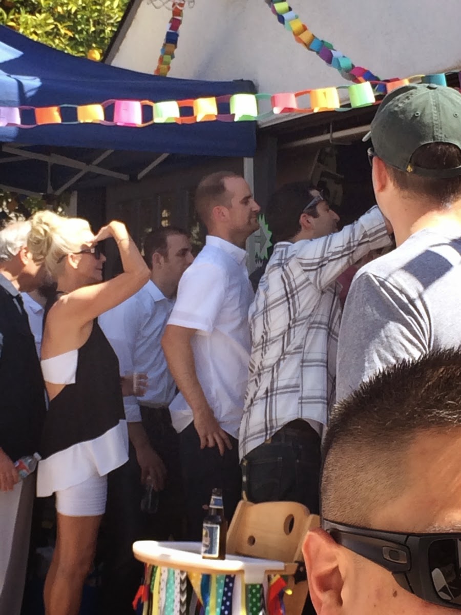 We were a little delayed in starting, not because the bride wasn’t ready, but because the Preakness was late in getting started, and we of course had to show the horse race on the backyard TV