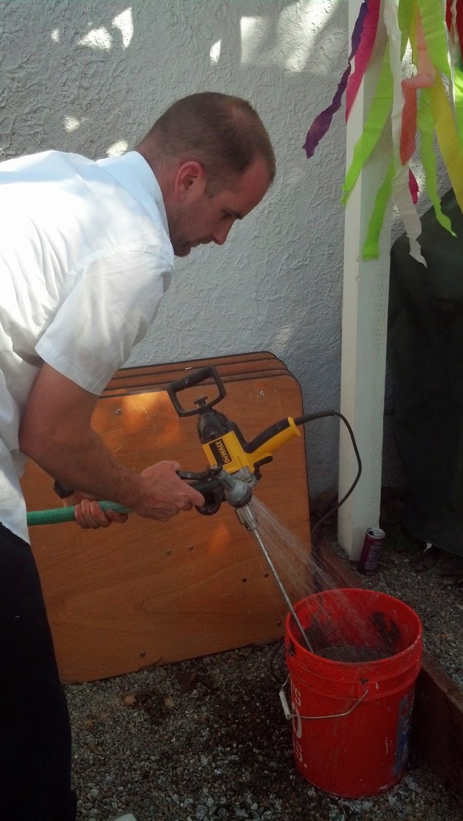 Chris didn’t take any time off and mixed up more mortar for our “guest books” to be signed. Carving names and messages were a big hit also, so he had to mix up more before the ceremony started